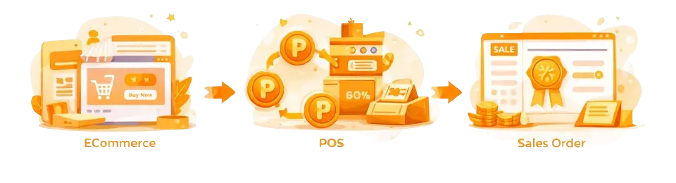 Earn and redeem points across Website, POS, and Sales Orders with advanced logic: